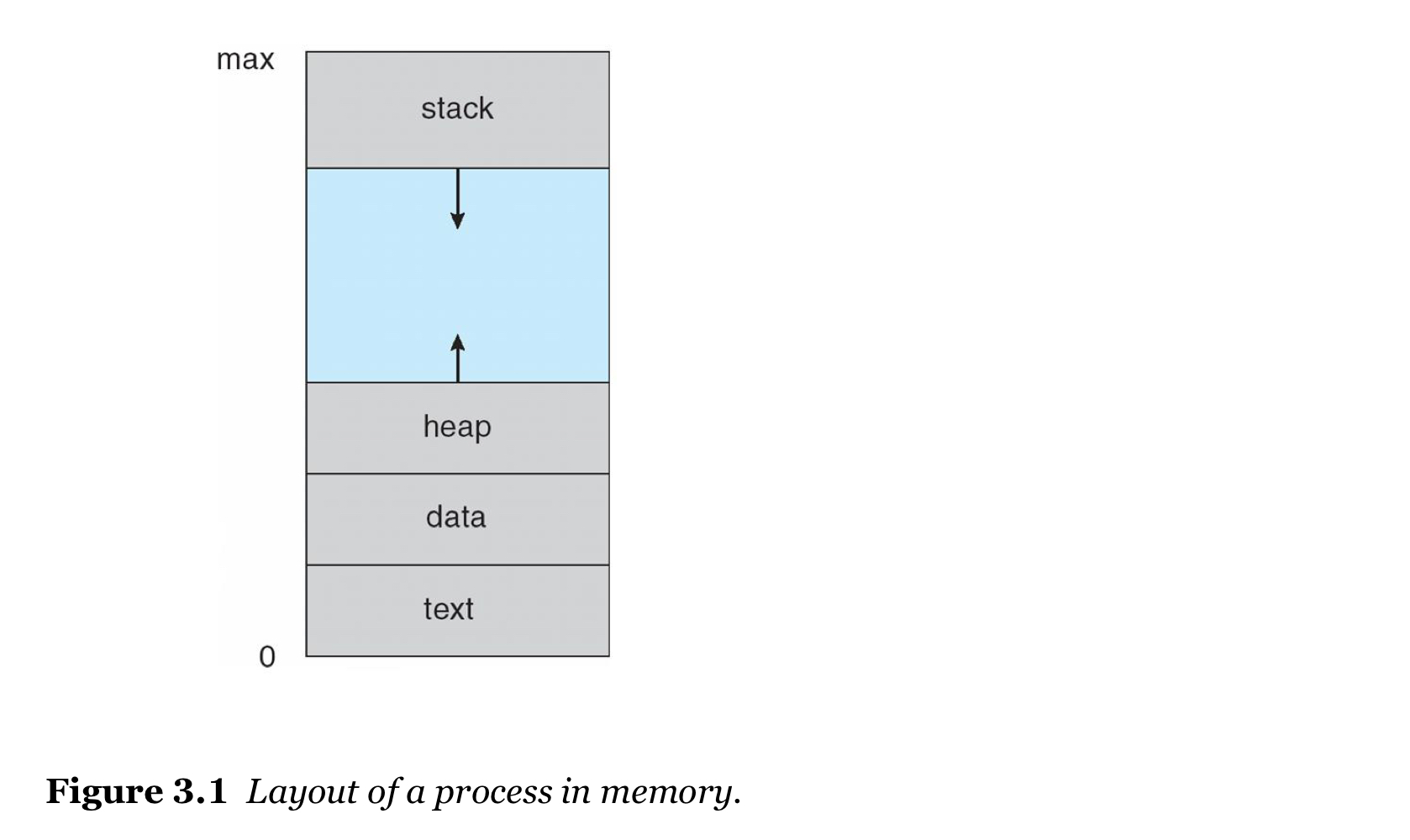 메모리에 로드된 프로세스는 다음으로 구성되어 있다.